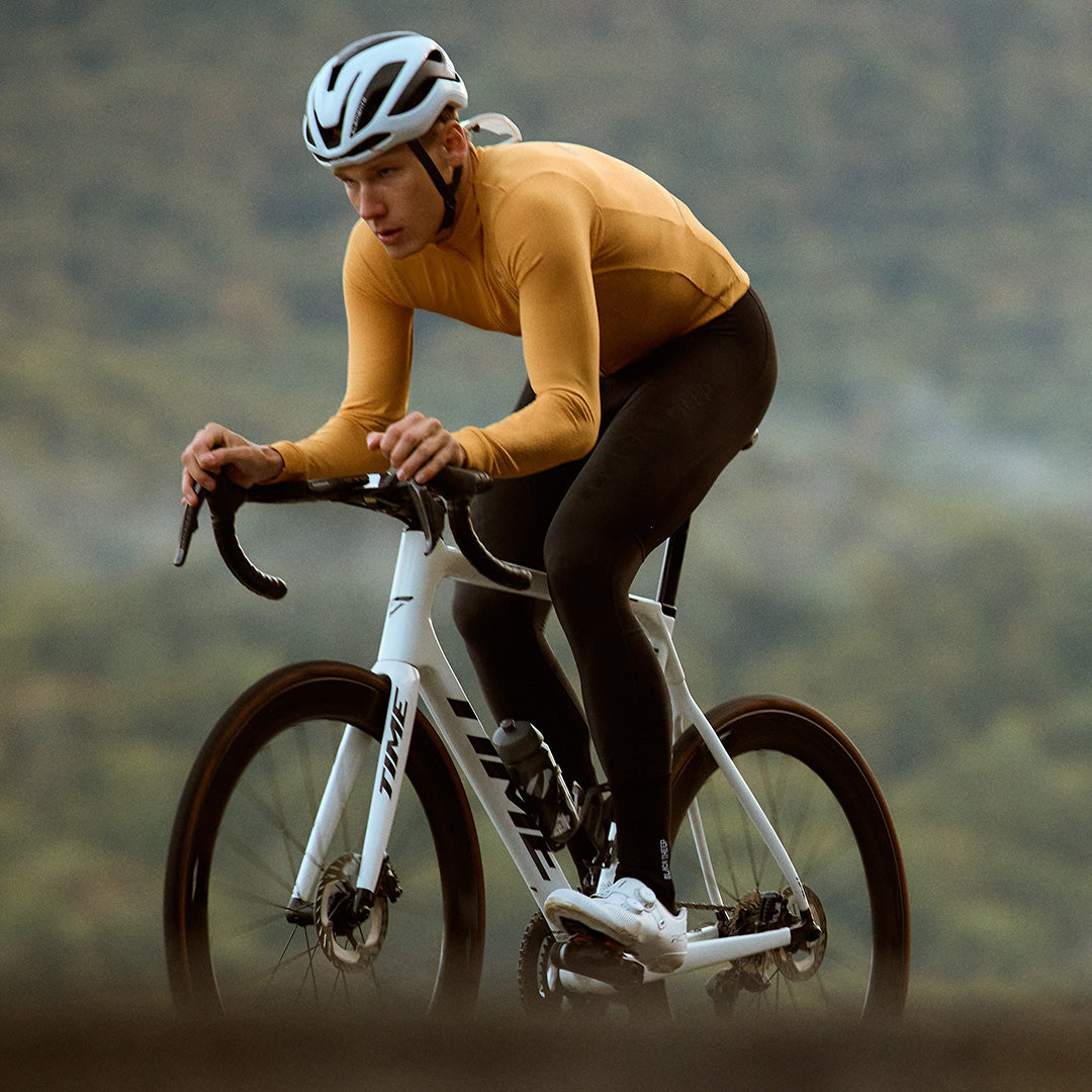 ThermoFleece is an Italian milled warp-knit brushed fabric with perfect full-leg compression and significantly enhanced durability. Perfect for winter cycling. Helping you appear tough as nails when riding in the cold.