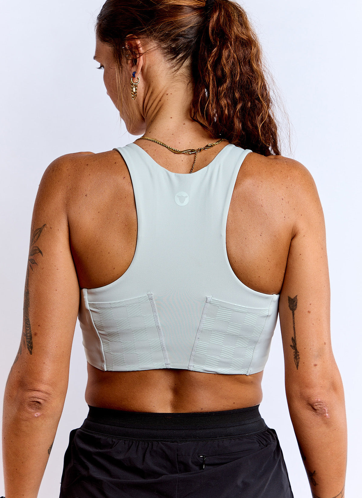 Built for long road races, the Women’s Marathon Race Crop combines medium support bra with intelligent, body-mapped storage. A compressive Bogota fabric locks everything in place, while rear and side pockets carry fuel and essentials without bounce, rub, or distraction.