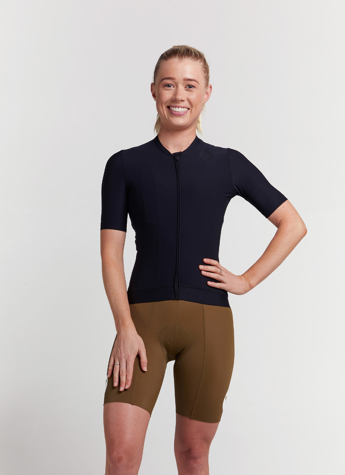 The Women's Team SS Jersey is the overachieving cousin of the Essentials Team Jersey. It's got a low profile collar, extra length, and an upgraded base fabric. It's made from FeatherSoft 160, a fabric that's as light as a feather but will endure years of all day riding. This 160gsm blend of Polyester and Spandex offers superior coverage, sweat management, and comfort. It also features FullMoon, a BSC YKK Zipper, and MARC Soft Waist Elastic. Feel free to ride, to race, to do everything in this beauty.